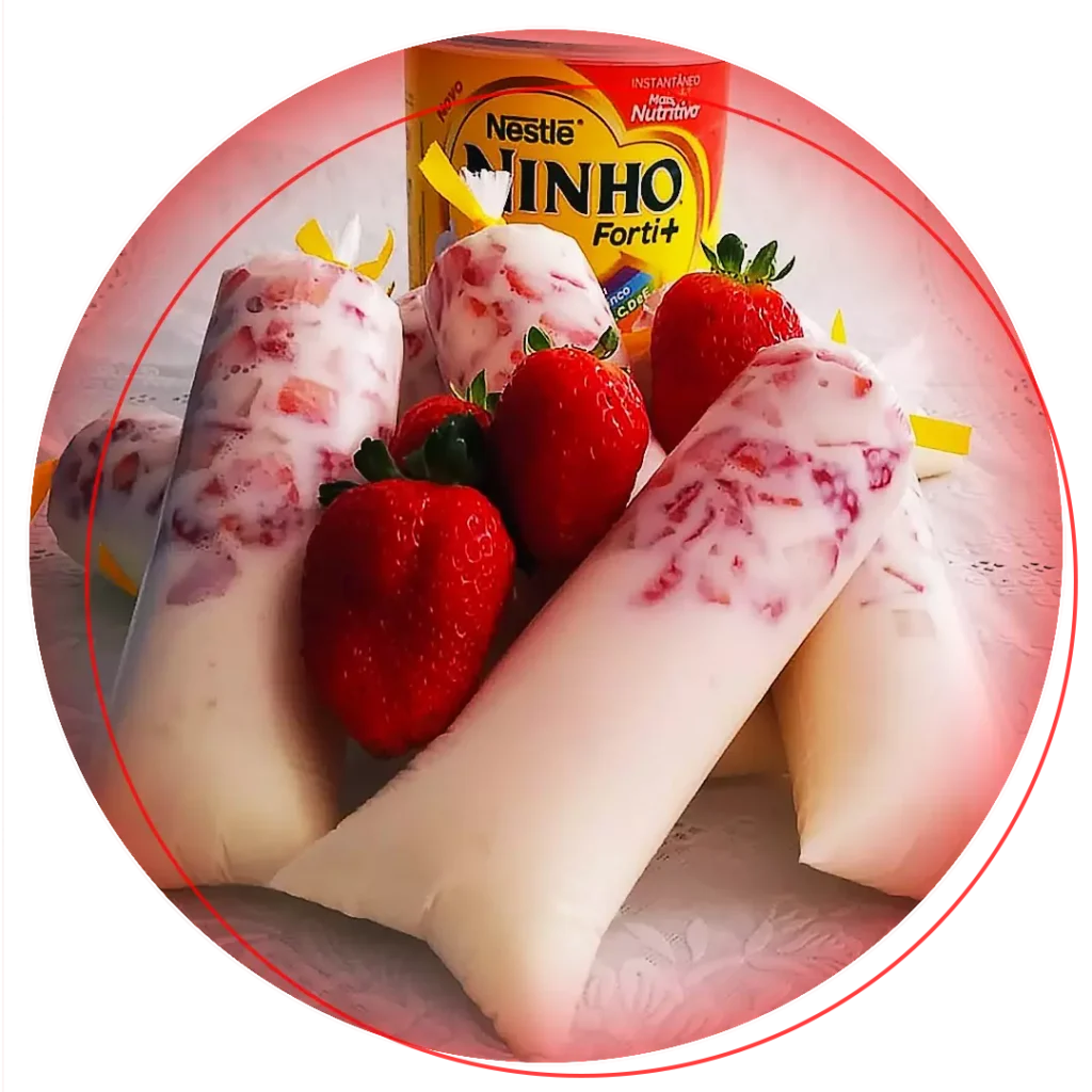 O geladinho de Ninho com Morango faz muito sucesso nas vendas e não poderia ficar de fora.